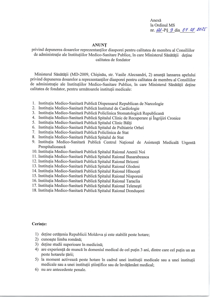 ANUNȚ privind depunerea dosarelor reprezentanților diasporei pentru calitatea de membru al Consiliilor de administrație