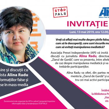 Care sunt riscurile manipulării și cum poate fi evitată manipularea mediatică au fost unele dintre subiectele discutate în cadrul unei acțiuni din cadrul Campaniei „Stop Fals!”, organizată luni de Asociaţia Presei Independente din R. Moldova la Telenești. Activitatea împotriva informațiilor false și tendențioase s-a desfășurat în incinta Bibliotecii publice “Vasile Alecsandri”, la aceasta participînd circa […]